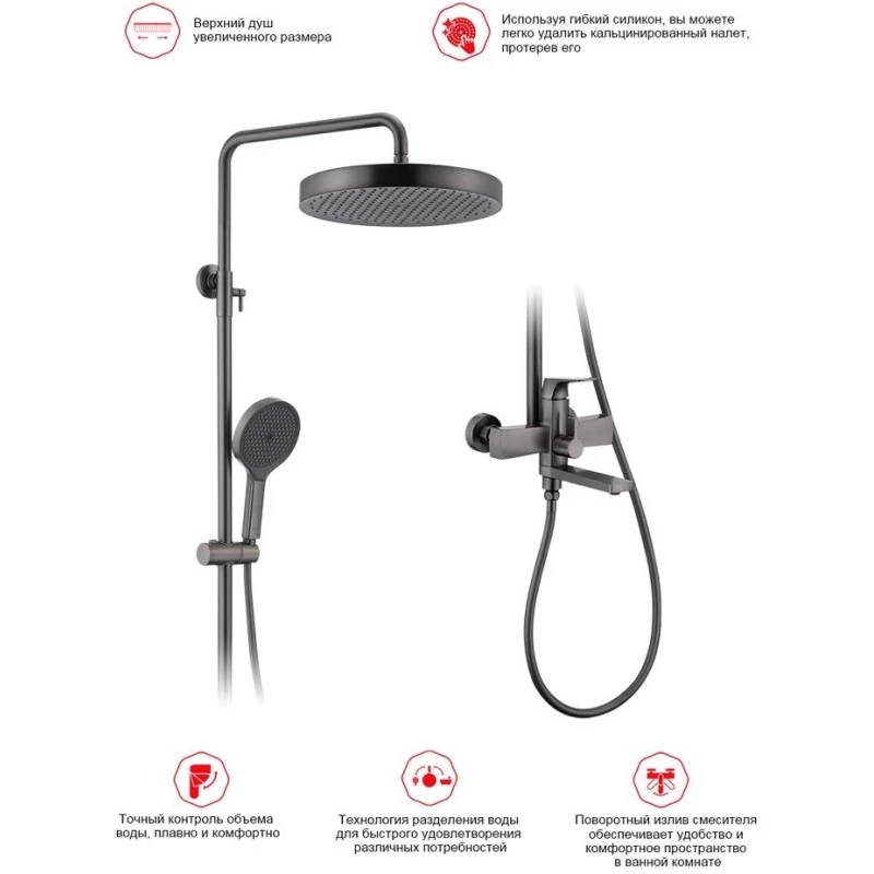 Душевая система Raglo R07.24.09 320 мм, со смесителем, графит матовый