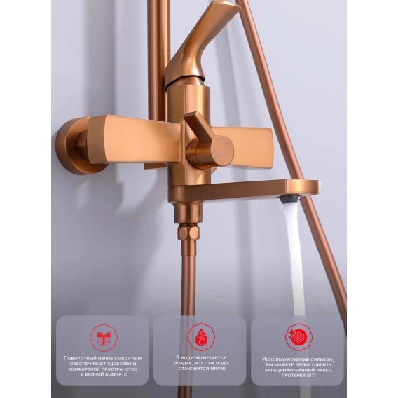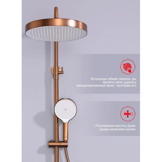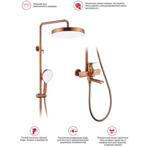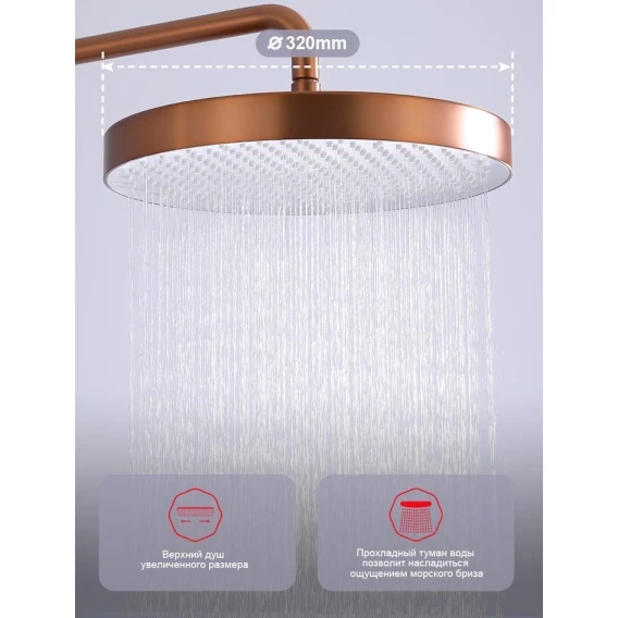 Душевая система Raglo R07.24.33 320 мм, со смесителем, медь матовая