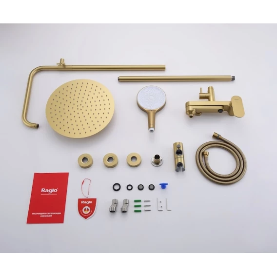 Душевая система Raglo R10.24.03 300 мм, со смесителем, золотой матовый