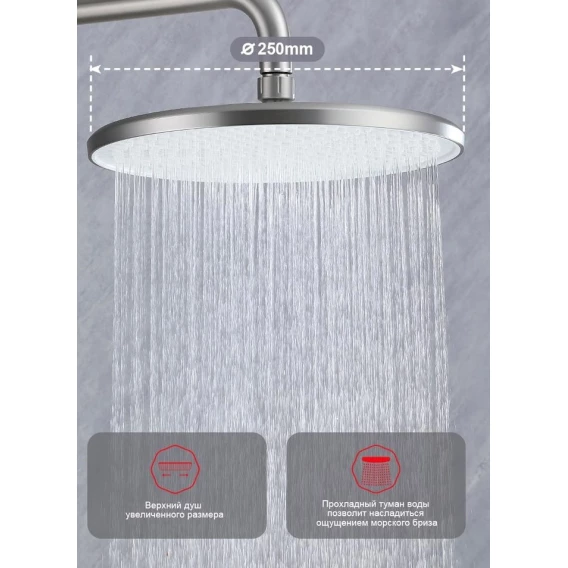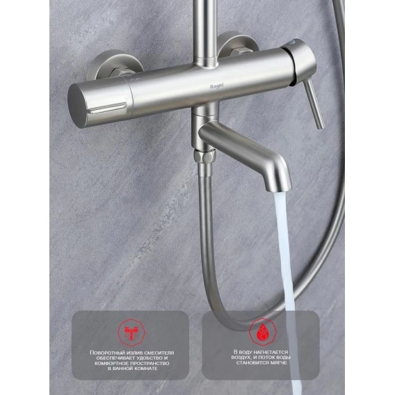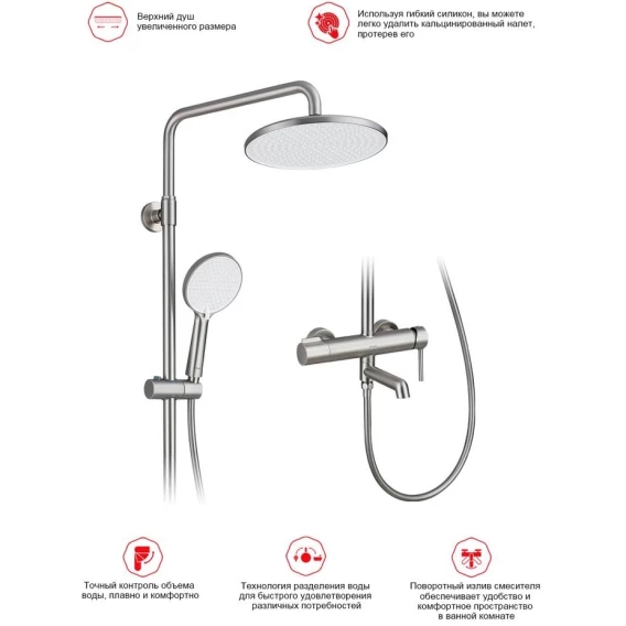 Душевая система Raglo R20.24.05 250 мм, со смесителем, сатин