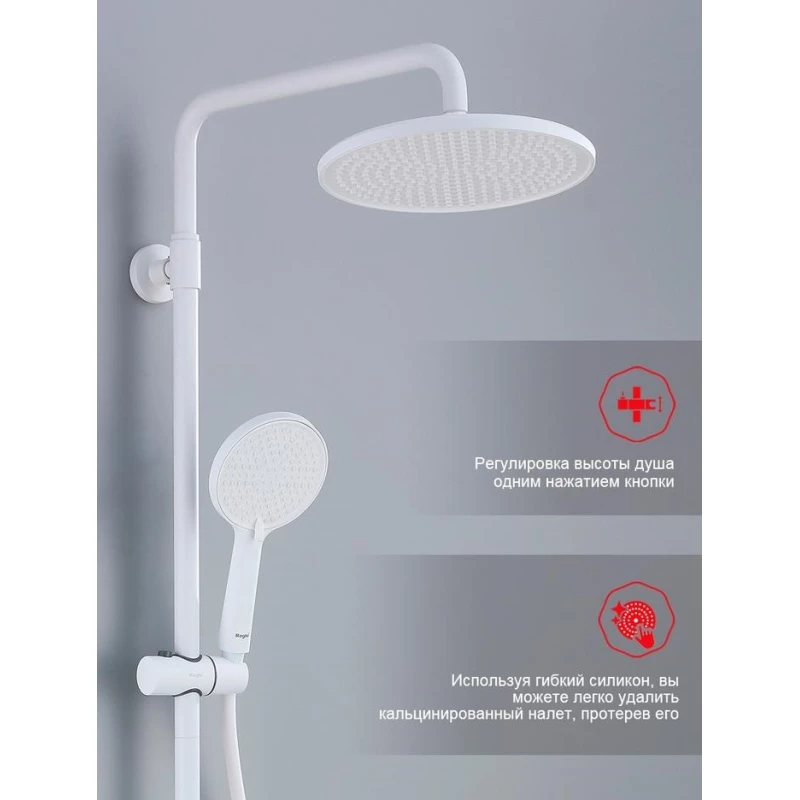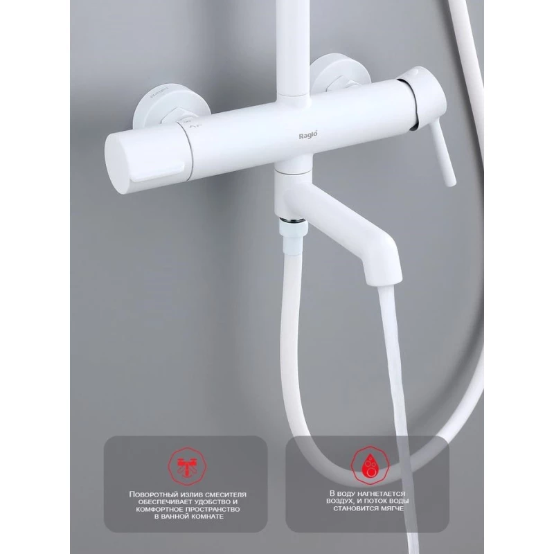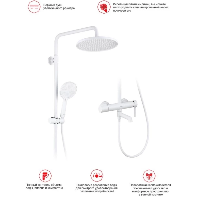 Душевая система Raglo R20.24.08 250 мм, со смесителем, белый