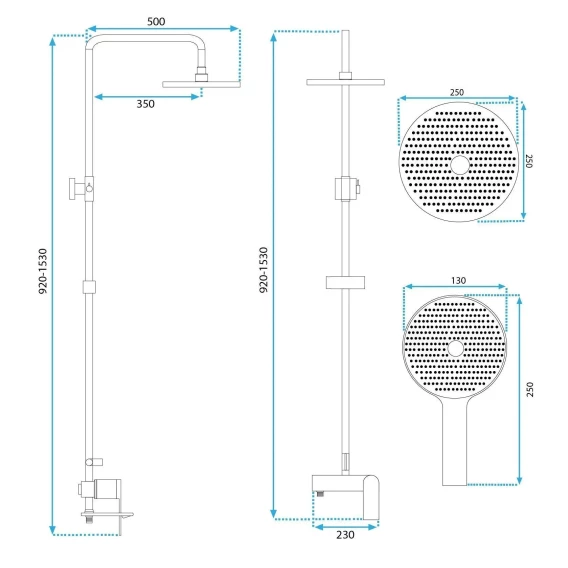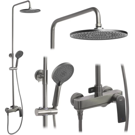 Душевая система Rea Avalon REA-P2401 250 мм, со смесителем, оружейная сталь