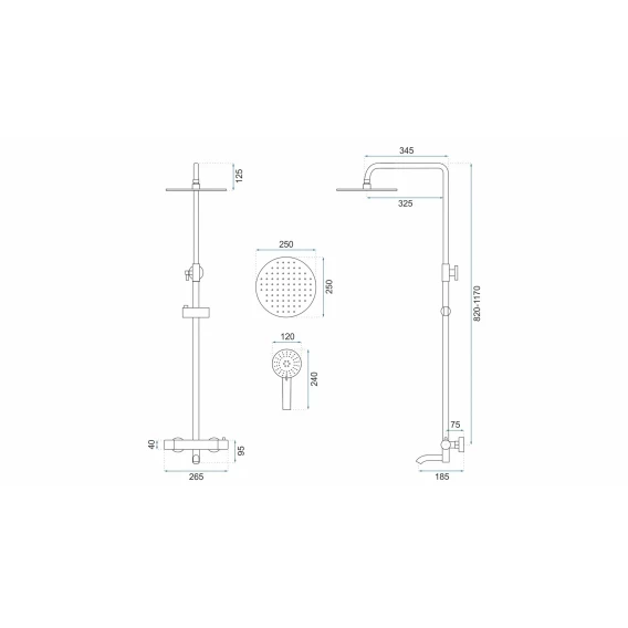 Аэратор, Металлическая розетка, Эксцентрики, Душевой шланг, Душевая лейка, Держатель для душевой лейки, Верхний душ, Кронштейн, Штанга душевая, Термостат