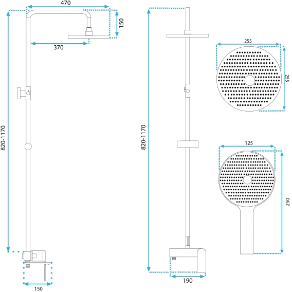 Аэратор, Металлическая розетка, Эксцентрики, Душевой шланг, Душевая лейка, Держатель для душевой лейки, Верхний душ, Смеситель, Кронштейн, Штанга душевая
