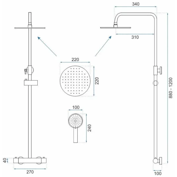 Металлическая розетка, Эксцентрики, Душевой шланг, Душевая лейка, Держатель для душевой лейки, Верхний душ, Кронштейн, Штанга душевая, Термостат
