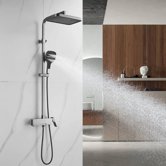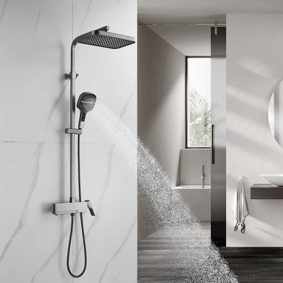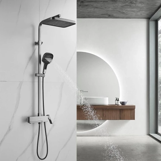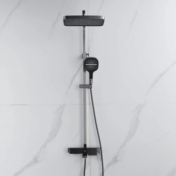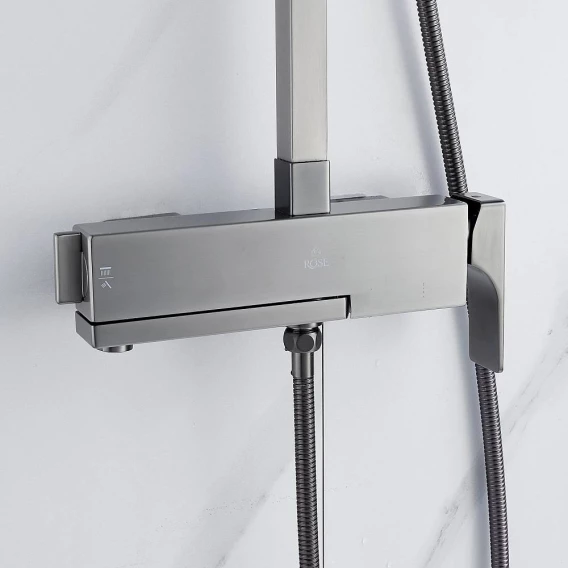 Душевая система Rose R1056T 330x220 мм, со смесителем, оружейная сталь