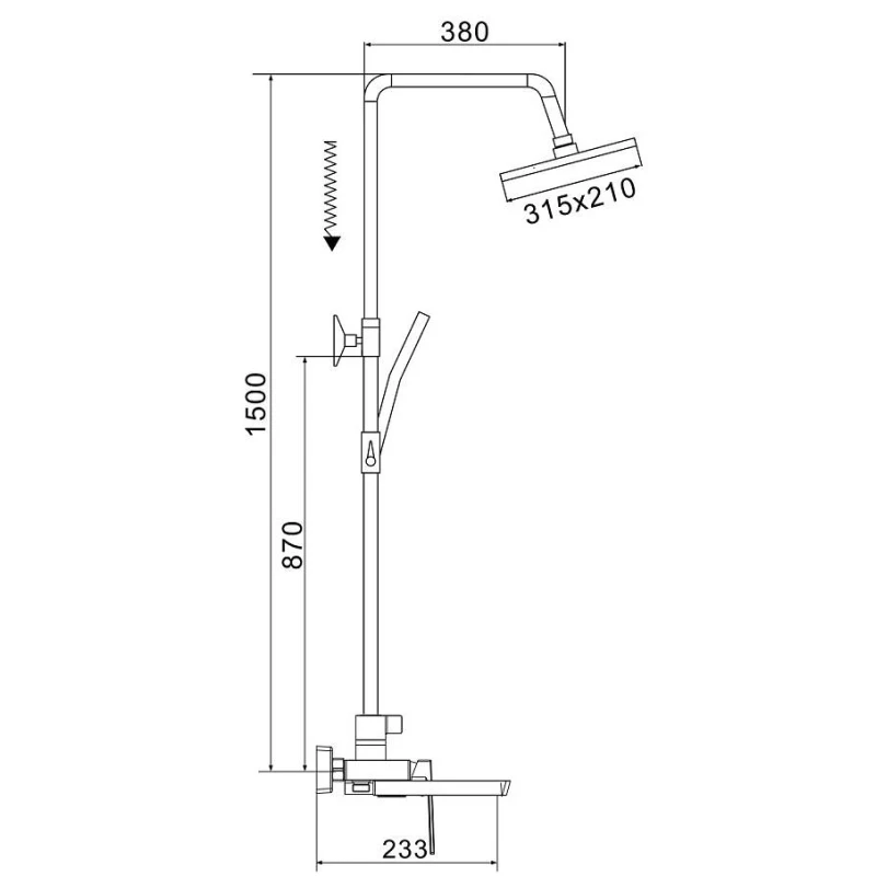 Аэратор, Металлическая розетка, Эксцентрики, Душевой шланг, Душевая лейка, Держатель для душевой лейки, Верхний душ, Смеситель, Кронштейн, Штанга душевая