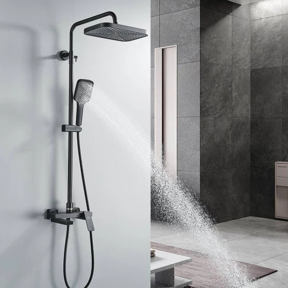 Душевая система Rose R1836H 315x210 мм, со смесителем, черный матовый