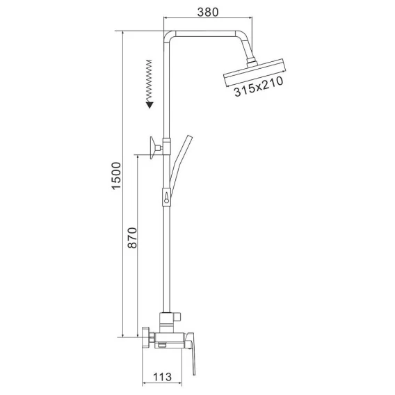 Душевая система Rose R1836H-6 315x210 мм, со смесителем, черный матовый