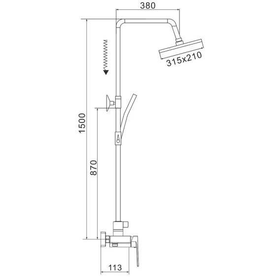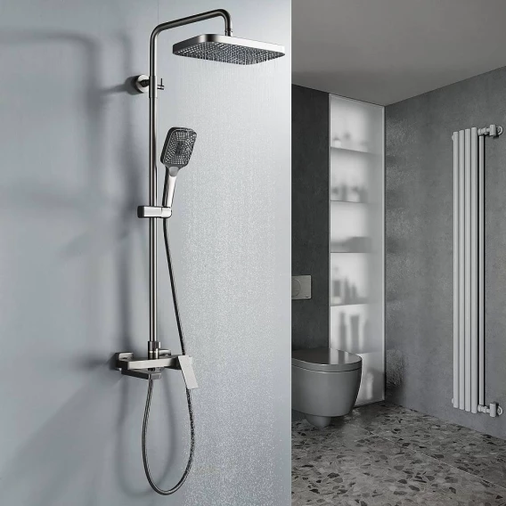 Душевая система Rose R1836T 315x210 мм, со смесителем, оружейная сталь