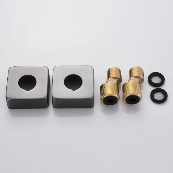 Аэратор, Металлическая розетка, Эксцентрики, Душевой шланг, Душевая лейка, Держатель для душевой лейки, Верхний душ, Смеситель, Кронштейн, Штанга душевая
