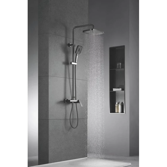 Душевая система Rose R1836T-6 315x210 мм, со смесителем, оружейная сталь