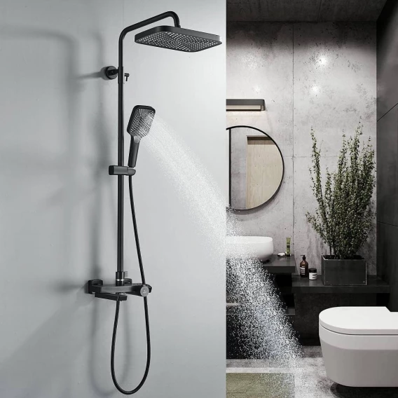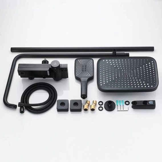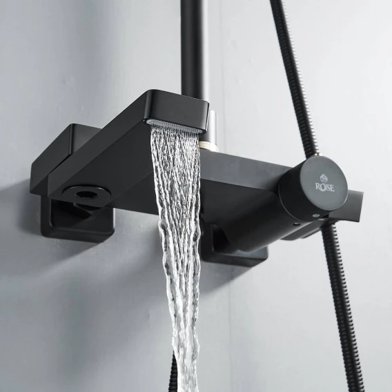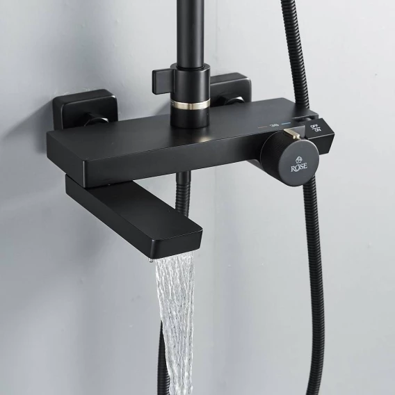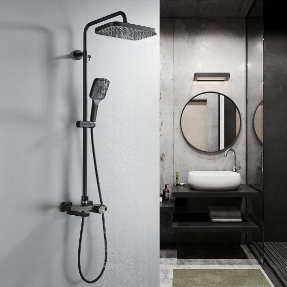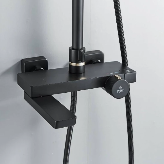 Душевая система Rose R1896H 315x210 мм, с термостатом, черный матовый