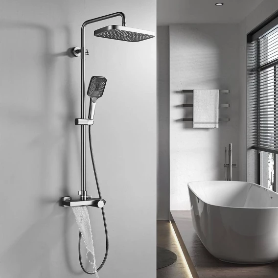 Душевая система Rose R1836T-6 315x210 мм, со смесителем, оружейная сталь