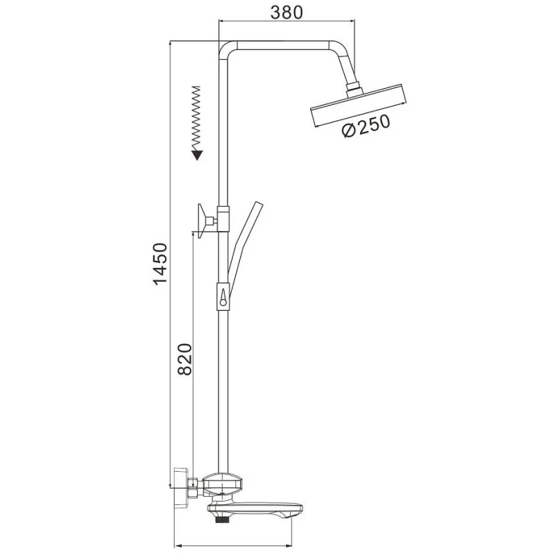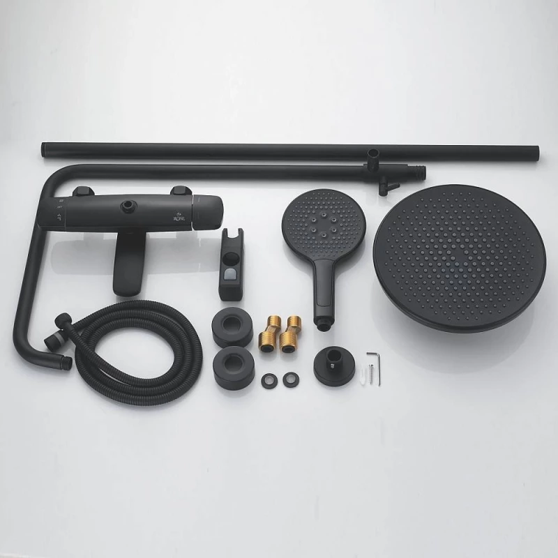 Аэратор, Металлическая розетка, Эксцентрики, Душевой шланг, Душевая лейка, Держатель для душевой лейки, Верхний душ, Смеситель, Кронштейн, Штанга душевая