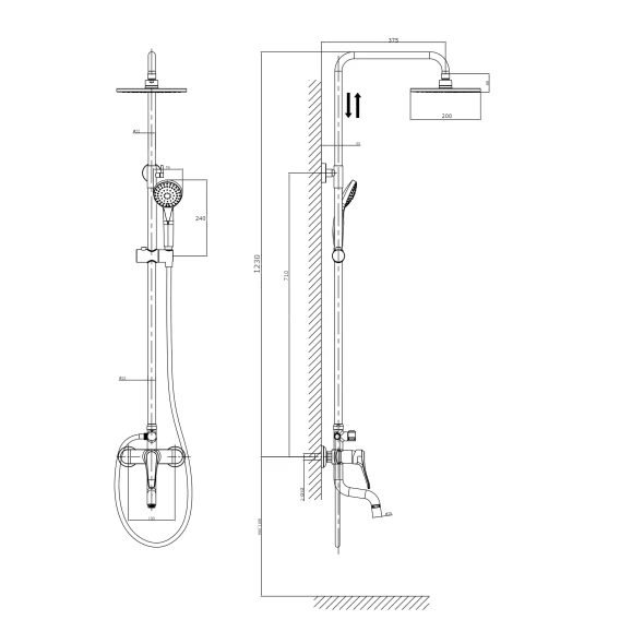 Аэратор, Металлическая розетка, Эксцентрики, Душевой шланг, Душевая лейка, Держатель для душевой лейки, Верхний душ, Смеситель, Кронштейн, Штанга душевая