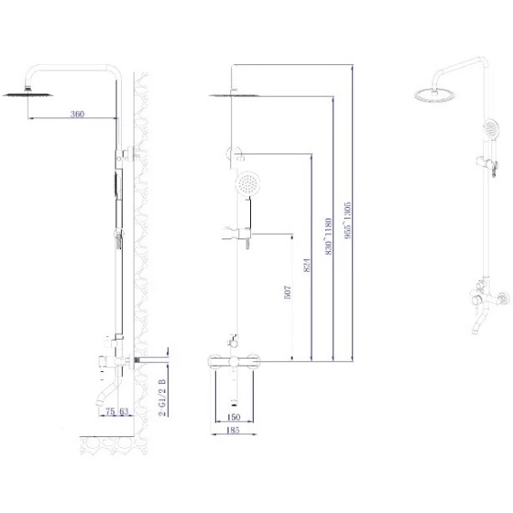 Аэратор, Металлическая розетка, Эксцентрики, Душевой шланг, Душевая лейка, Держатель для душевой лейки, Верхний душ, Смеситель, Кронштейн, Штанга душевая