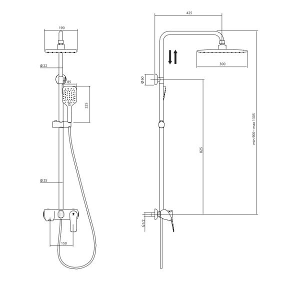 Аэратор, Металлическая розетка, Эксцентрики, Душевой шланг, Душевая лейка, Держатель для душевой лейки, Верхний душ, Смеситель, Кронштейн, Штанга душевая