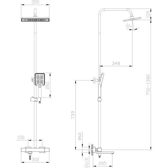 Душевая система Rush ST4235-60 300 мм, с термостатом, хром