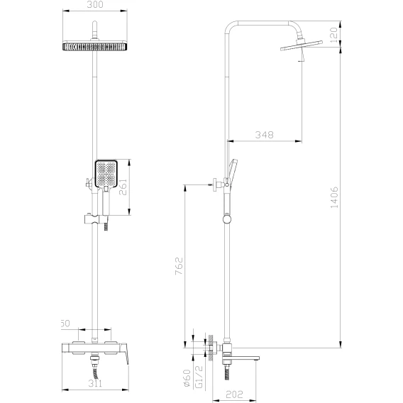 Душевая система Rush ST4235-90 300 мм, со смесителем, хром