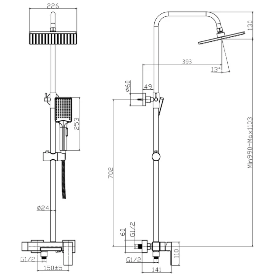 Душевая система Rush Thira TR3635-50Black 226 мм, со смесителем, черный матовый