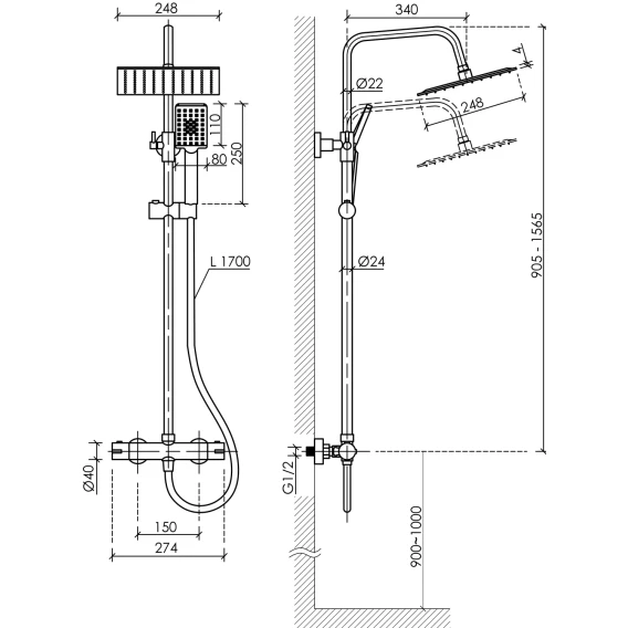 Металлическая розетка, Эксцентрики, Душевой шланг, Душевая лейка, Держатель для душевой лейки, Верхний душ, Кронштейн, Штанга душевая, Термостат