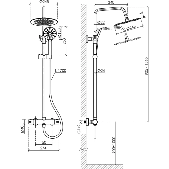 Металлическая розетка, Эксцентрики, Душевой шланг, Душевая лейка, Держатель для душевой лейки, Верхний душ, Кронштейн, Штанга душевая, Термостат