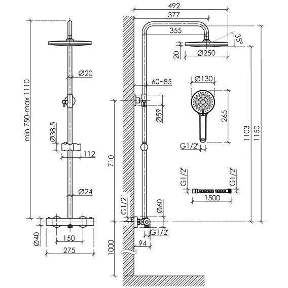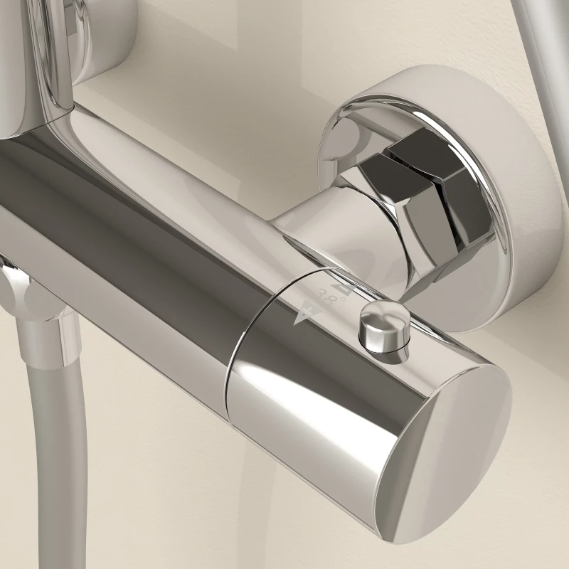 Металлическая розетка, Эксцентрики, Душевой шланг, Душевая лейка, Держатель для душевой лейки, Верхний душ, Кронштейн, Штанга душевая, Термостат