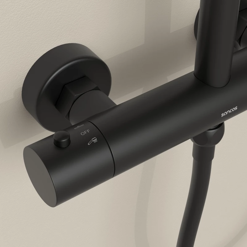 Металлическая розетка, Эксцентрики, Душевой шланг, Душевая лейка, Держатель для душевой лейки, Верхний душ, Кронштейн, Штанга душевая, Термостат