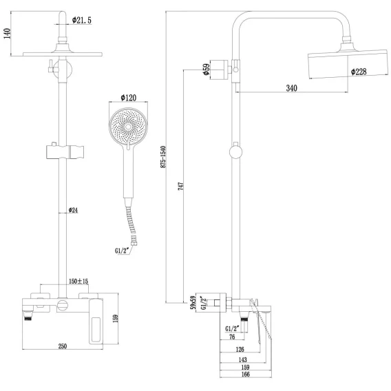 Душевая система Savol S-009045H 228 мм, со смесителем, черный матовый