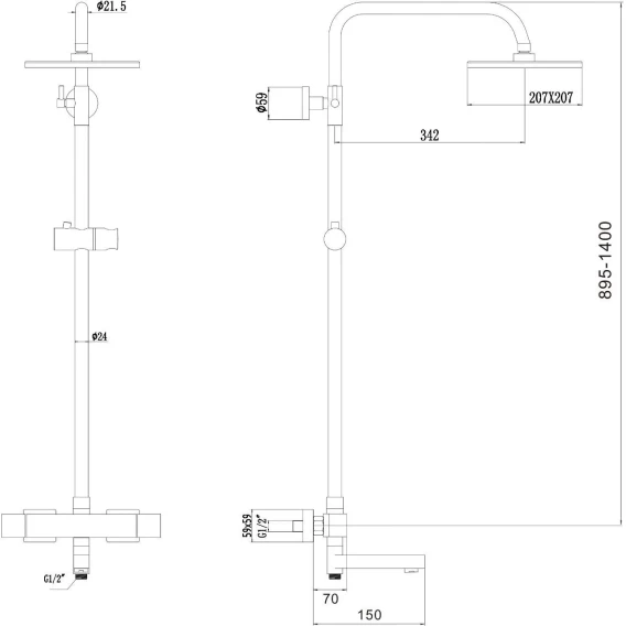 Аэратор, Металлическая розетка, Эксцентрики, Душевой шланг, Душевая лейка, Держатель для душевой лейки, Верхний душ, Кронштейн, Штанга душевая, Термостат