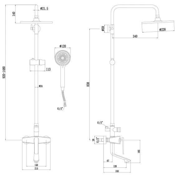 Аэратор, Металлическая розетка, Эксцентрики, Душевой шланг, Душевая лейка, Держатель для душевой лейки, Верхний душ, Смеситель, Кронштейн, Штанга душевая
