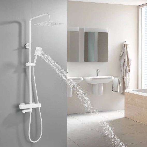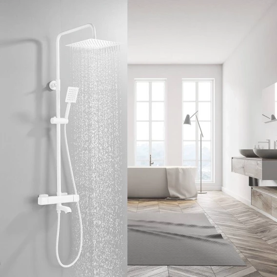 Душевая система Shevanik S3096C 250 мм, с термостатом, белый
