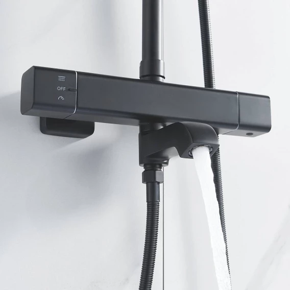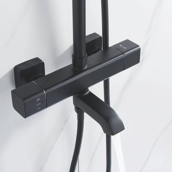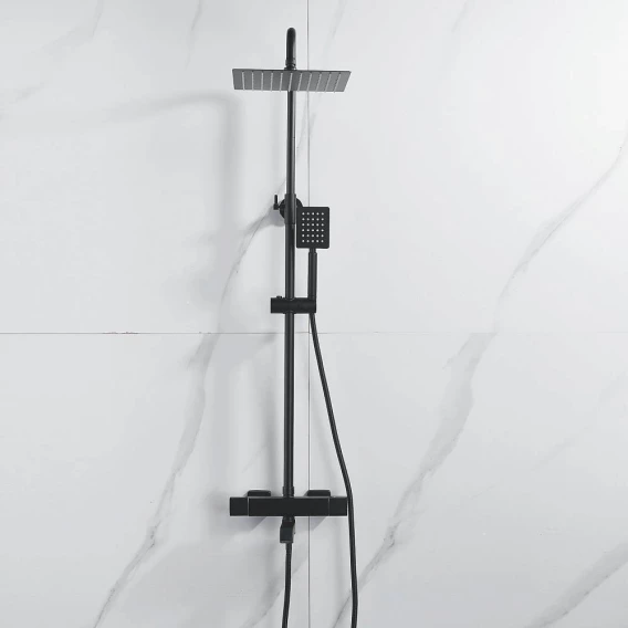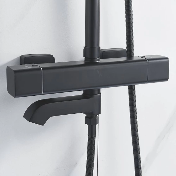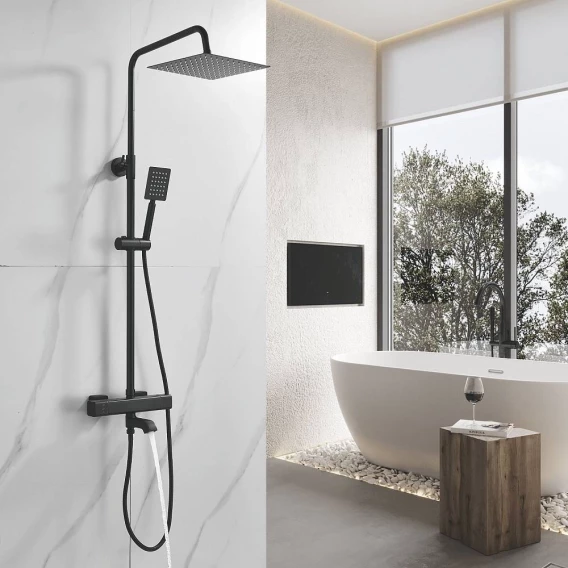 Душевая система Shevanik S3096H 250 мм, с термостатом, черный матовый