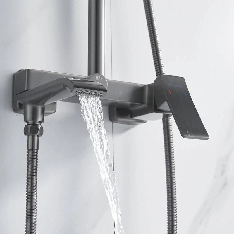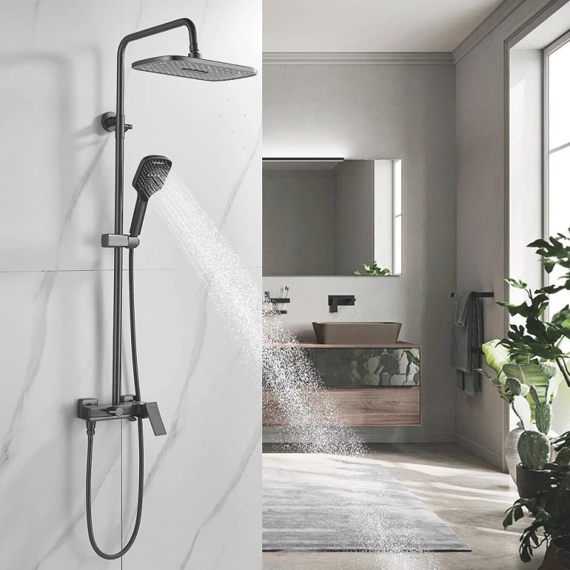 Аэратор, Металлическая розетка, Эксцентрики, Душевой шланг, Душевая лейка, Держатель для душевой лейки, Верхний душ, Смеситель, Кронштейн, Штанга душевая