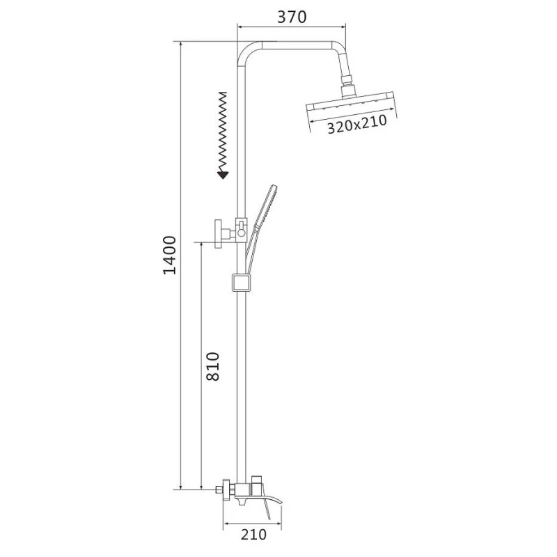 Аэратор, Металлическая розетка, Эксцентрики, Душевой шланг, Душевая лейка, Держатель для душевой лейки, Верхний душ, Смеситель, Кронштейн, Штанга душевая