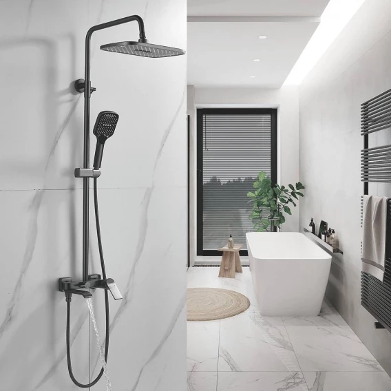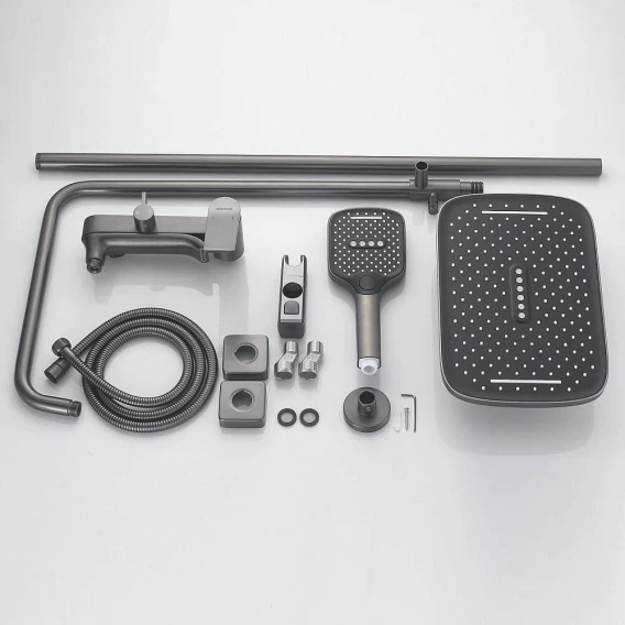 Аэратор, Металлическая розетка, Эксцентрики, Душевой шланг, Душевая лейка, Держатель для душевой лейки, Верхний душ, Смеситель, Кронштейн, Штанга душевая