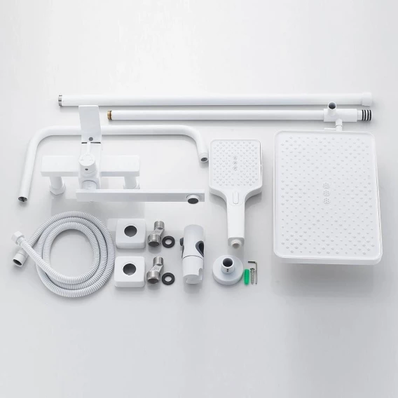 Аэратор, Металлическая розетка, Эксцентрики, Душевой шланг, Душевая лейка, Держатель для душевой лейки, Верхний душ, Смеситель, Кронштейн, Штанга душевая