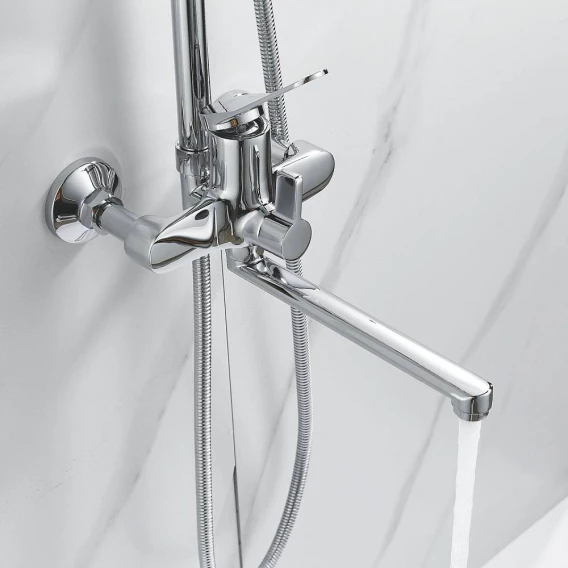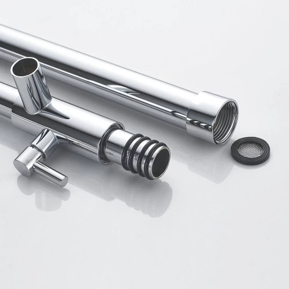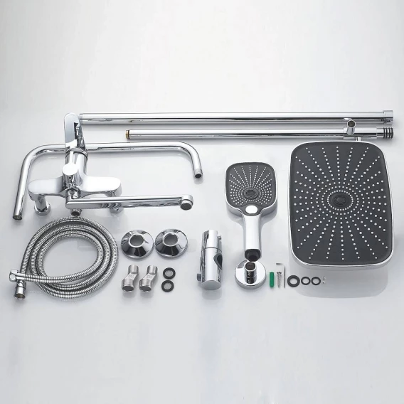Аэратор, Металлическая розетка, Эксцентрики, Душевой шланг, Душевая лейка, Держатель для душевой лейки, Верхний душ, Смеситель, Кронштейн, Штанга душевая