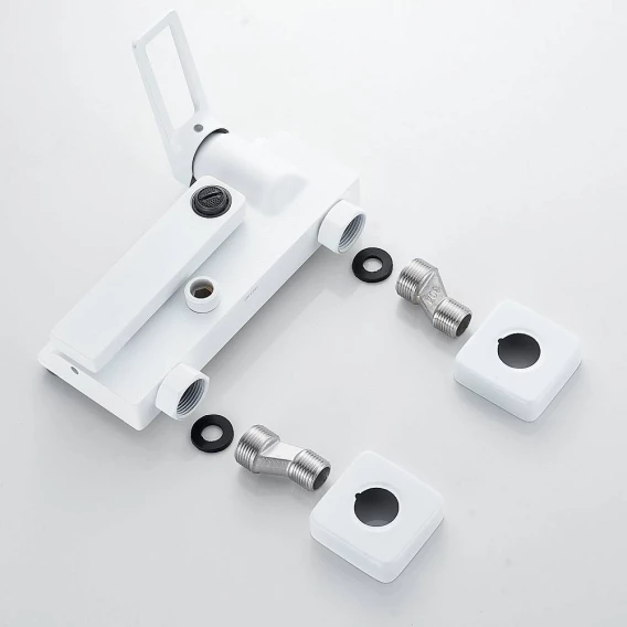 Аэратор, Металлическая розетка, Эксцентрики, Душевой шланг, Душевая лейка, Держатель для душевой лейки, Полочка, Верхний душ, Смеситель, Кронштейн, Штанга душевая