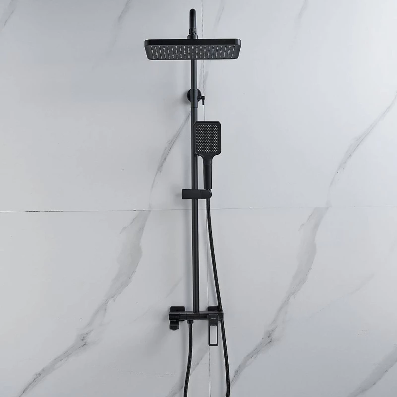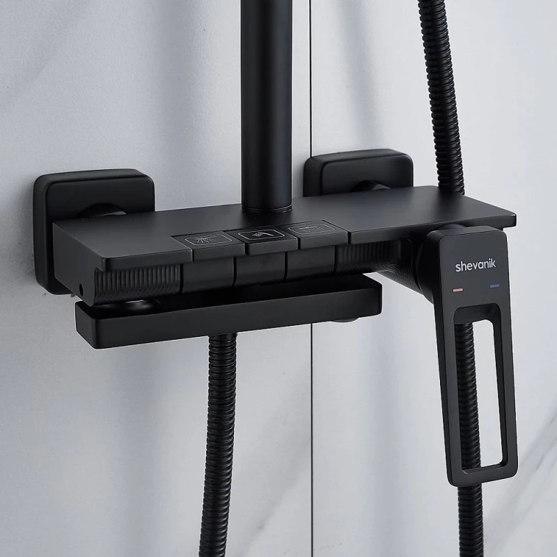 Аэратор, Металлическая розетка, Эксцентрики, Душевой шланг, Душевая лейка, Держатель для душевой лейки, Полочка, Верхний душ, Смеситель, Кронштейн, Штанга душевая