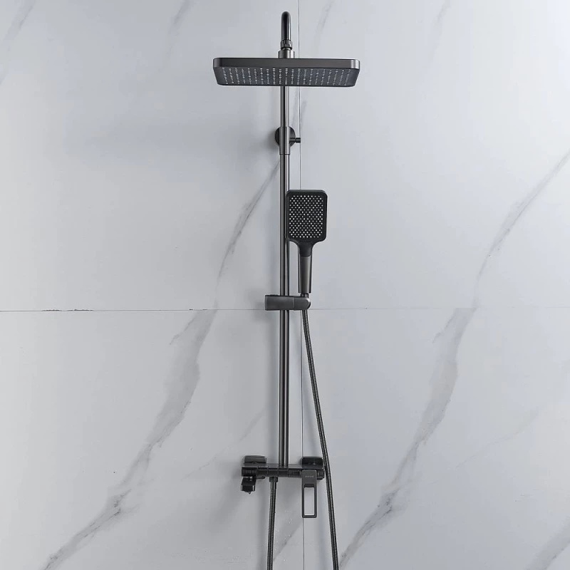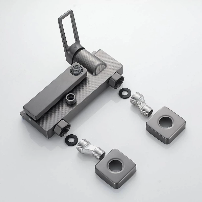 Аэратор, Металлическая розетка, Эксцентрики, Душевой шланг, Душевая лейка, Держатель для душевой лейки, Полочка, Верхний душ, Смеситель, Кронштейн, Штанга душевая