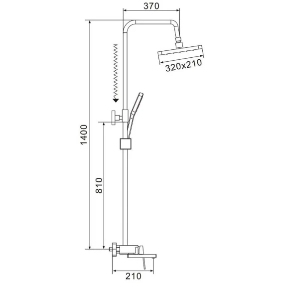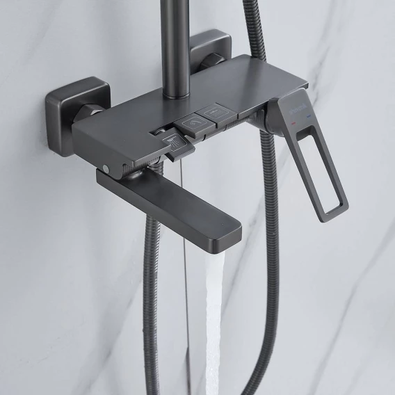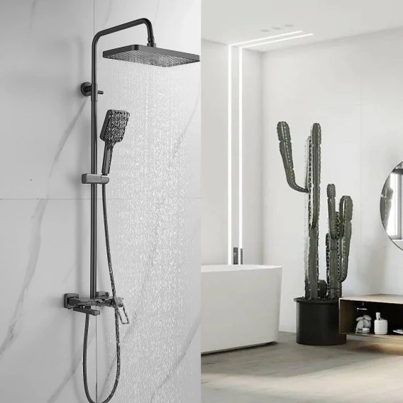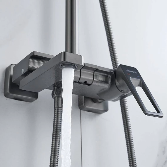 Душевая система Shevanik S6826T 320x210 мм, со смесителем, оружейная сталь