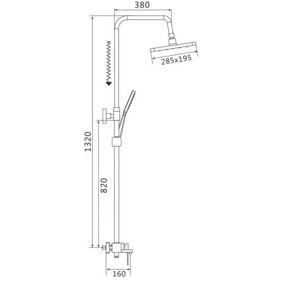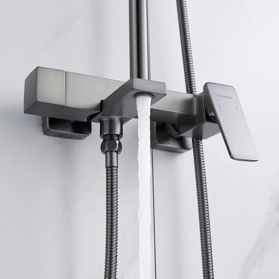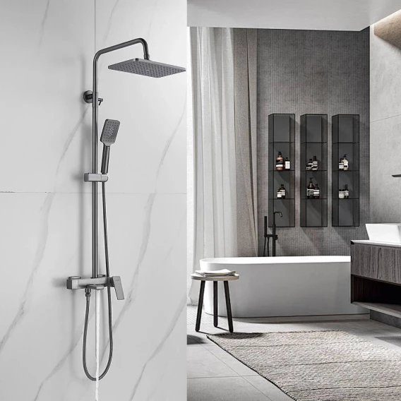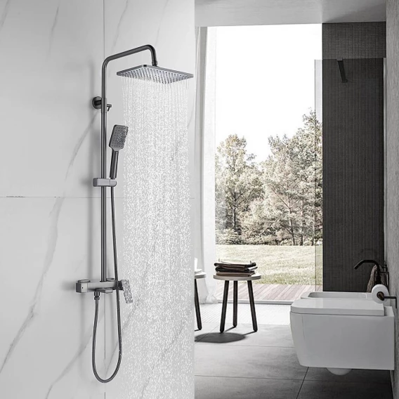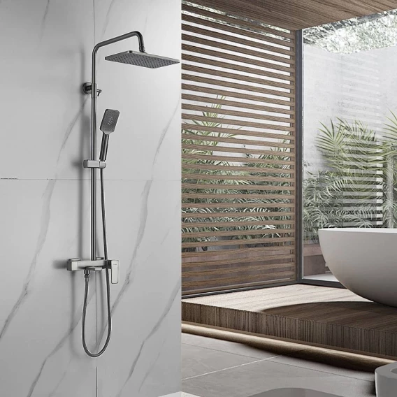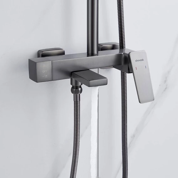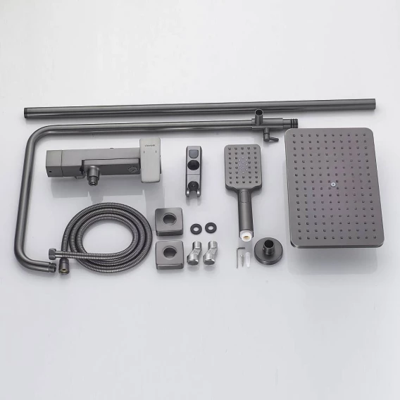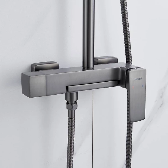 Душевая система Shevanik S8936T 285x195 мм, со смесителем, оружейная сталь