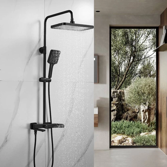 Душевая система Shevanik S9936H 320x210 мм, со смесителем, черный матовый