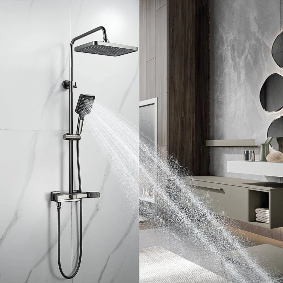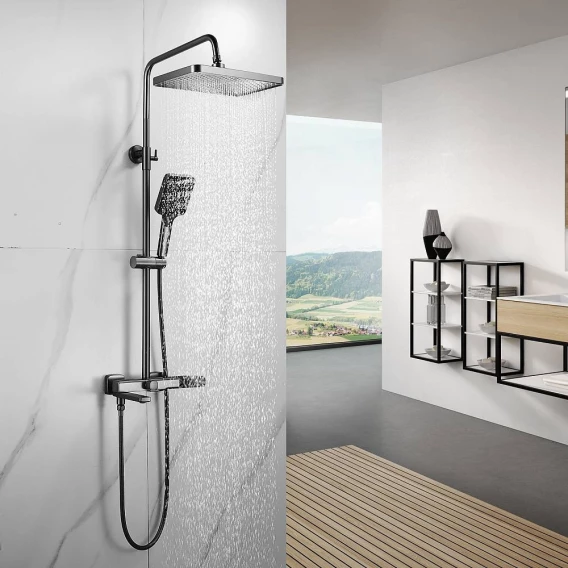 Душевая система Shevanik S9936T 320x210 мм, со смесителем, оружейная сталь