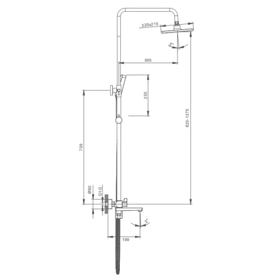 Душевая система Splenka S02.24 320x210 мм, со смесителем, хром