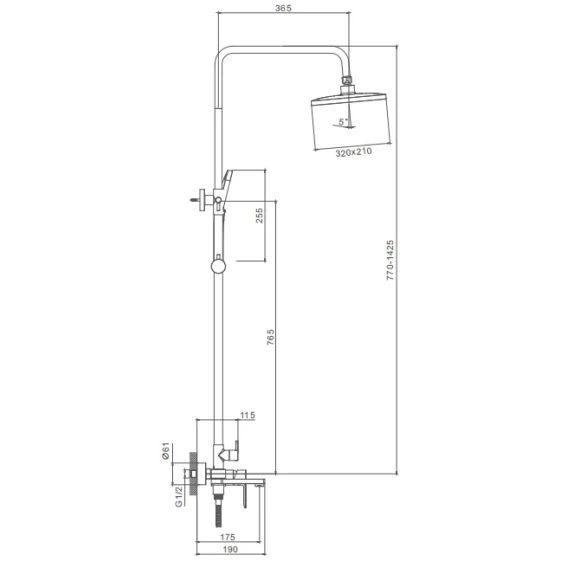 Душевая система Splenka S06.24.09 320x210 мм, со смесителем, графит матовый