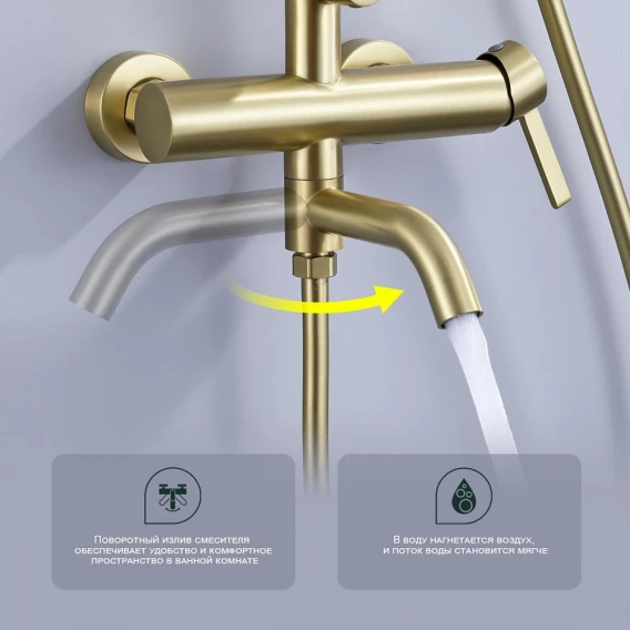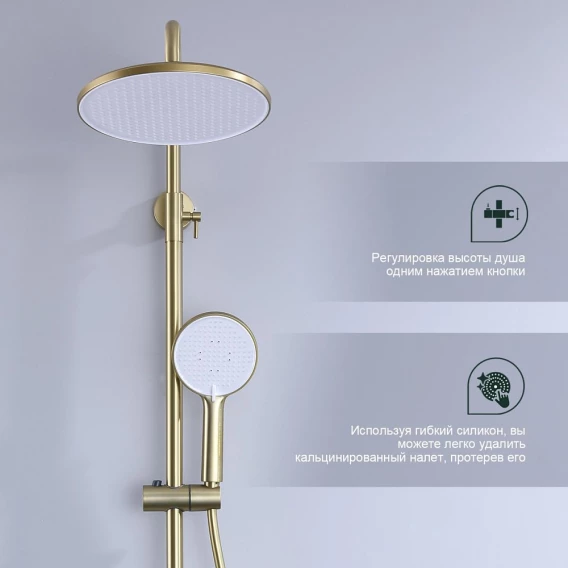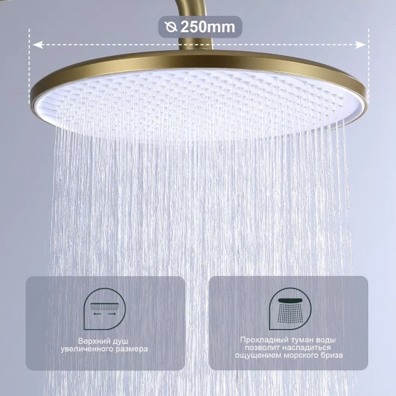 Душевая система Splenka S221.24.03 250 мм, со смесителем, золотой матовый
