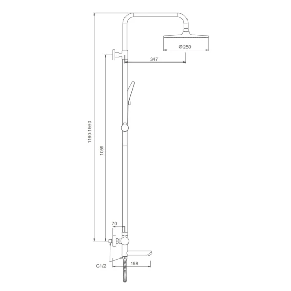 Душевая система Splenka S223.26.09 250 мм, с термостатом, графит матовый